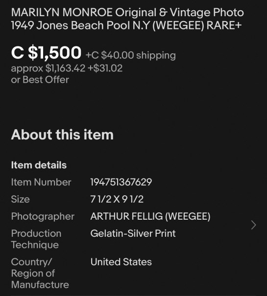 That is how we know this is a weegee photograph.. but because it is not stamped we cant charge the going rate for weegee images