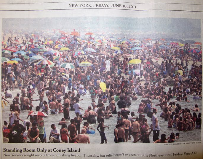 “The entire beach, as far as the eye could see, was inundated with wet, barefoot, half-naked people. Bodies, bodies, bodies everywhere… ‘And here we are now, all lying naked on Coney Island beach.'”