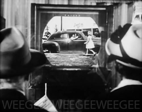 (Coincidentally and intriguingly Weegee’s work on a few films, made around 1950, in Hollywood, a few crime photos in “M” and distorted traffic and people in “Footlight Varieties,” were displayed on television, as television, in the films. The new medium of television on the old medium of film; or the old medium/entertainment of vaudeville, and perhaps photography, presented on the new medium/entertainment of film… Experimental film as a source of humor… Weegee the avant-garde-ist and experimental-ist.)