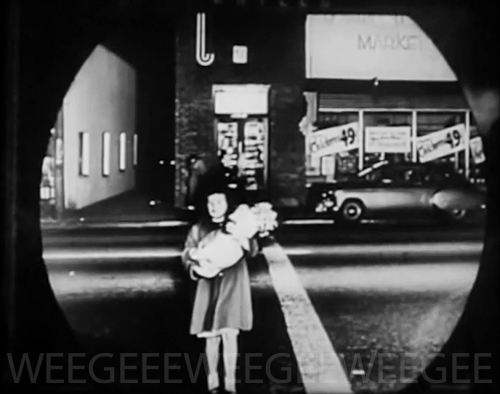 A few of the still images, between the “DON’T”s, are (bizarre and incongruous, staged and spooky) Weegee photos…