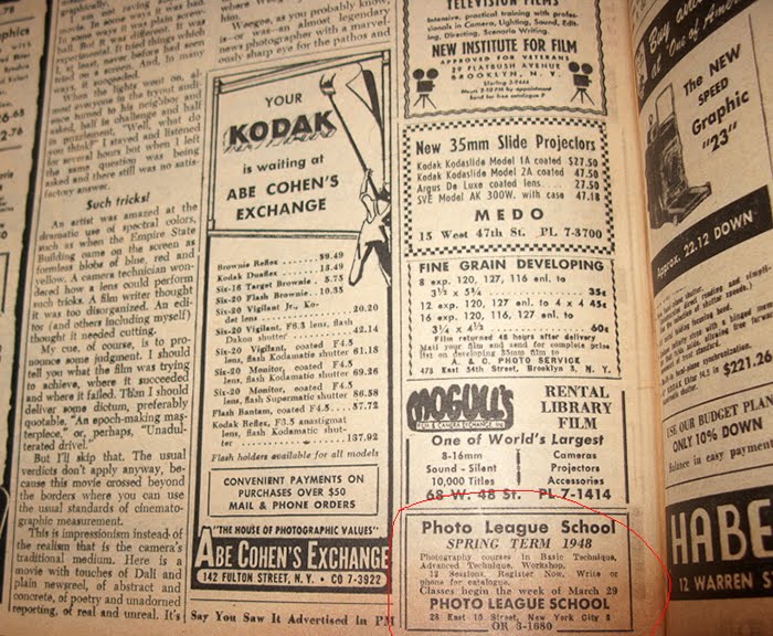 “Weegee Has a Salon: Arthur Fellig, the night-prowling cameraman who turns in many of PM’s choicest pictures of fires, wrecks, rescues and crimes, is having a one-man show of his own at the Photo League, 31 E. 21st St. The exhibit will run through Sept. 6.”