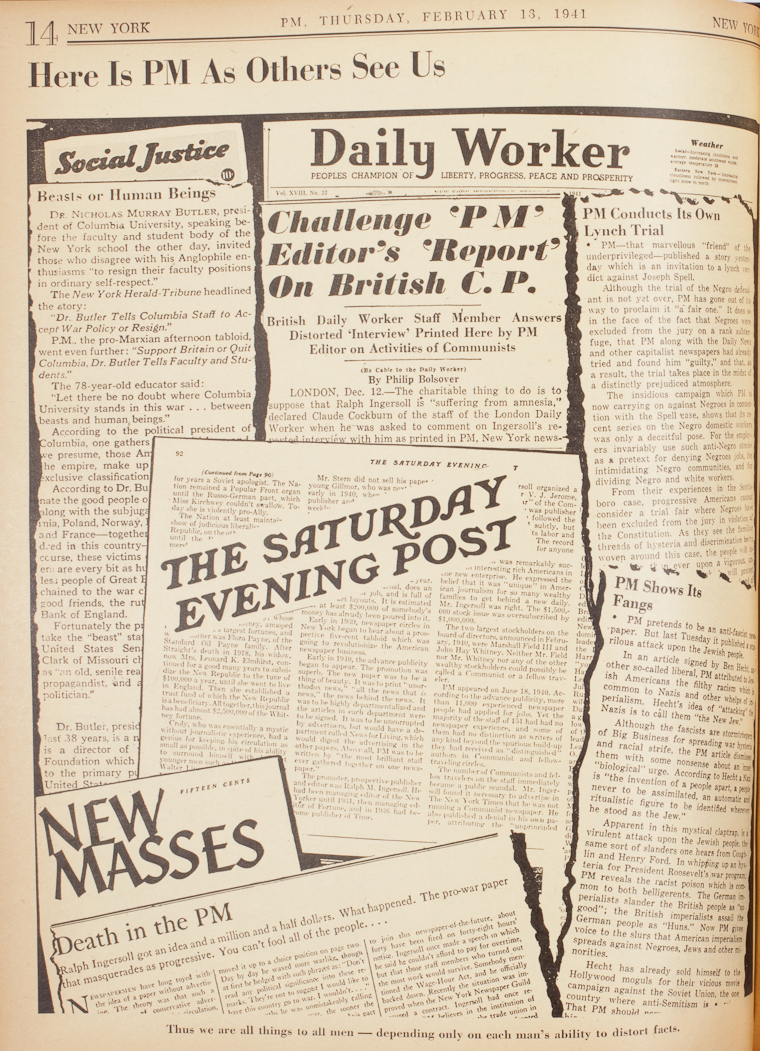 An historic event is about to occur. A new kind of newspaper will soon be published in New York. It will give you DAILY (five days a week) all the important news your morning newspaper now does. Then, in addition – in a 64-page Sunday edition called PM’s WEEKLY — it will give you everything and more than any weekly now gives you, and because it will roll off the presses Saturday, it will be AT LEAST FIVE DAYS FRESHER — in its news and pictures — than any other weekly picture or news magazine.