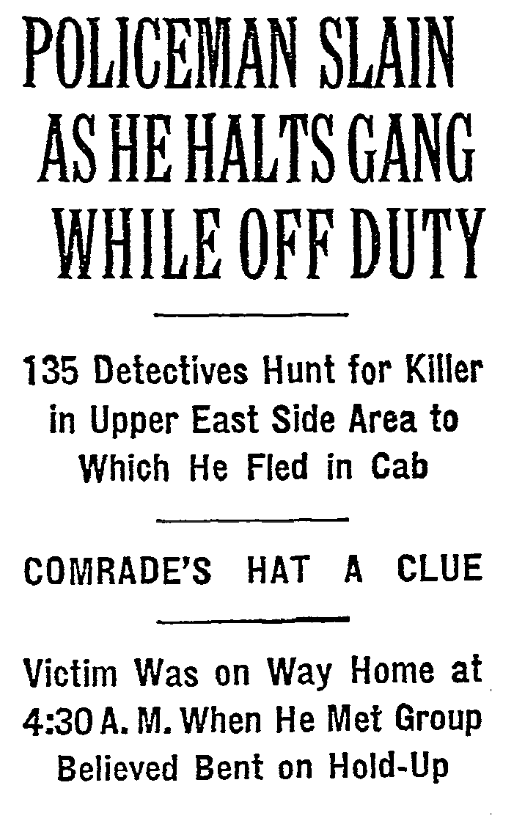 The Cop Kills Holdup Man story was widely published, photo-free, on November 24, 1941, here are selected newspaper headlines (and a book caption):