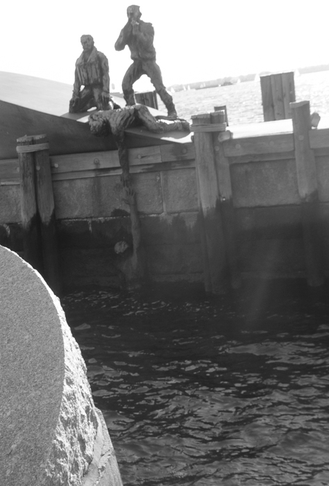 Walking 4 miles an hour down Battery Pl. at the foot of West St., near Castle Clinton at about 6:30 p.m. today… The Merchant Marine memorial brought up a body…