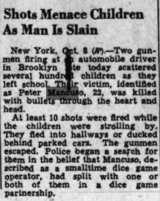 Brooklyn School Children See Gambler Murdered in Street