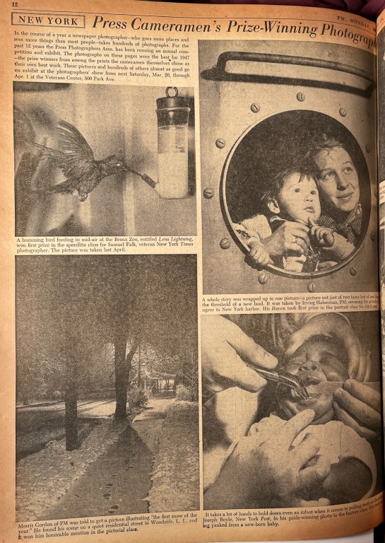 PM, March 15, 1948, p.12 (Photos by Samuel Falk, Irving Haberman, Morris Gordon, Joseph Boyle.)