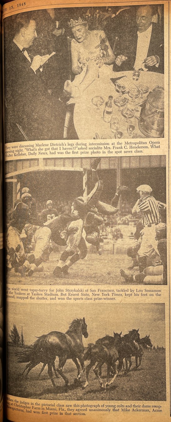 PM, March 15, 1948, p.13 (Photos by Walter Kelleher, Ernest Sisto, Mike Ackerman.)