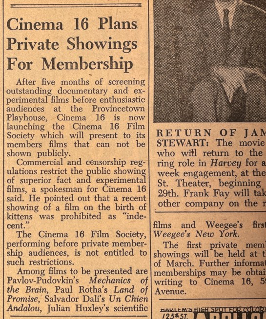 Cinema 16 Plans Private Showings for Membership