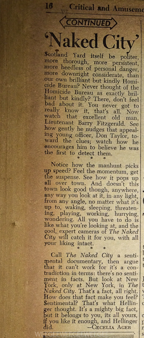 The rest of the picture, tautening its silken cord in skillfull, imperceptibly quickening tempo, has to do with our own FBI out- smarting some first rate, very suave, Nazi rascals in Rio, ring-led by Claude Rains and Mme. Konstantin, who plays his mother. Mr. Grant is one of the FBI agents, Miss Bergman another. Since for a spell it’s necessary for Miss Bergman to be married to Mr. Rains, in order to discover what he’s up to – actually he’s only up to collecting the raw materials for atomic bombs – you can imagine how Mr. Grant suffers. You will have to imagine it. Mr. Grant would be the last to reveal it, if he could.