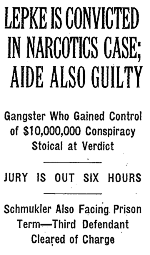 LEPKE IS CONVICTED IN NARCOTICS CASE; AIDE IS ALSO GUILTY
