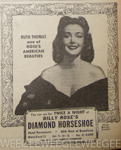 Virginia Kinn is a 23-year-old burlesque stripteaser. When she’s in the metropolitan area, she has to play across the river at the Hudson Theater, Union City, or the Empire Theater in Newark because of the local license regulations. “Being in burlesque is like just like any other job,” she said. “As far as own time, we live like anybody else lives – we eat and we sleep. A lot of people have the wrong impression. They think we’re freaks or something…